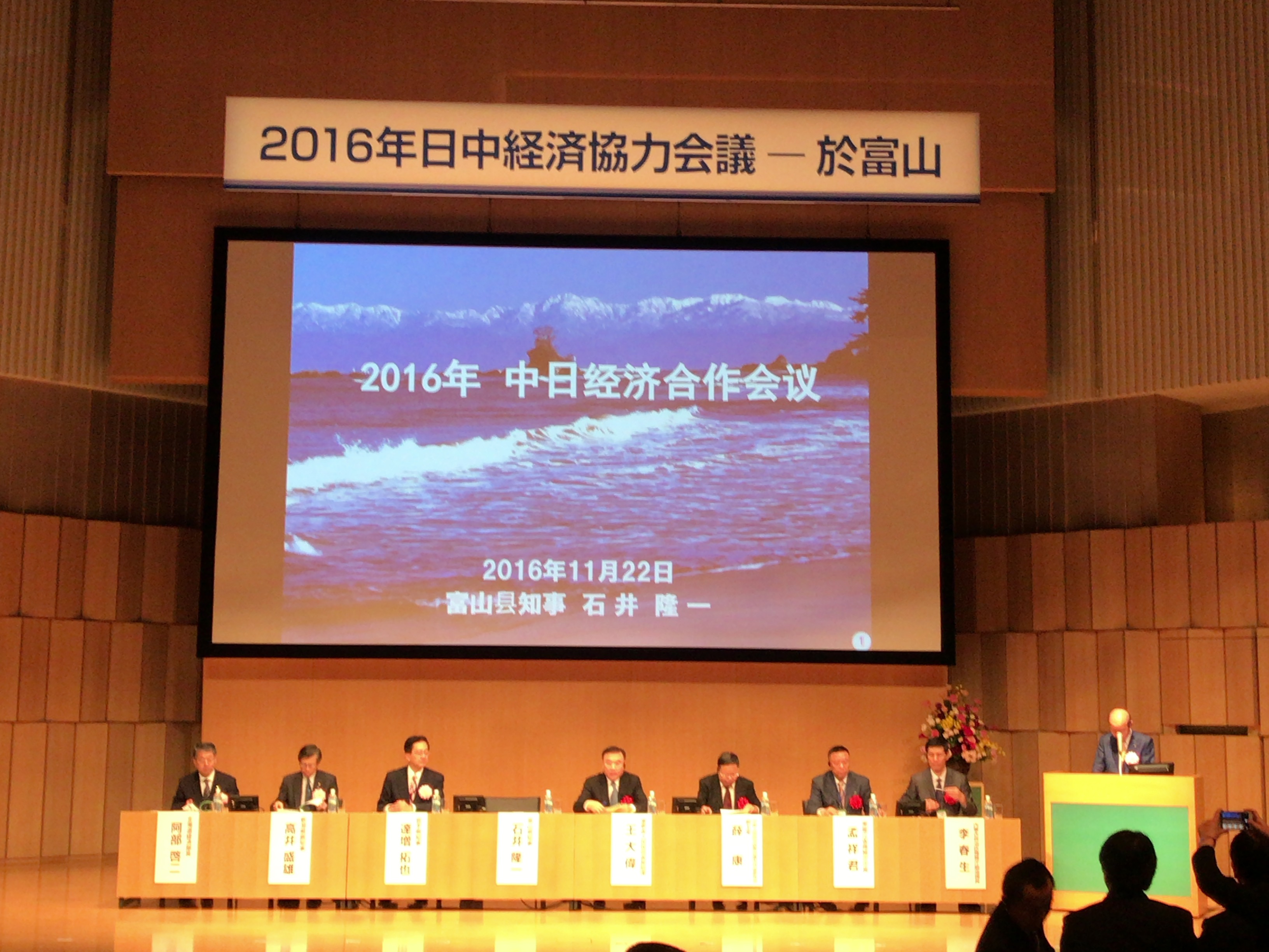 11月22日,石塚总领事出席了在富山县召开的日中经济合作会议。全体会议以“新一轮中国东北振兴和由日中经济合作解决课题”为主题,日中两国地方政府、经济界等有关人士约440人出席,加深了交流。此外,石塚总领事在前一天21日举办的欢迎招待会上发表了来宾致词。