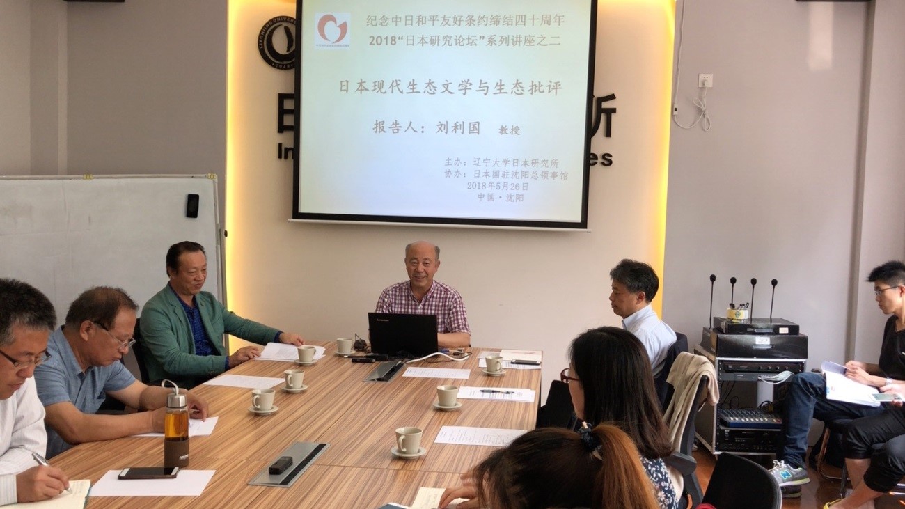 在此次论坛上,大连外国语学院刘利国教授进行了题为《现代日本的生态文学与生态批评》的讲演。他就关于作为生态文学中的以 “原爆”和“公害”为主题的文章比较著名,以及“场所意识”、“交感”等生态批评手法等进行了分析说明。约40名辽宁大学的教师及学生参加了本次论坛。