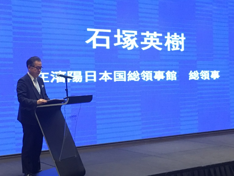 7月17日,石塚总领事出席了在沈阳和平艾美酒店举办的“中国沈阳-日本关西经贸合作交流会”,并发表来宾致辞。
