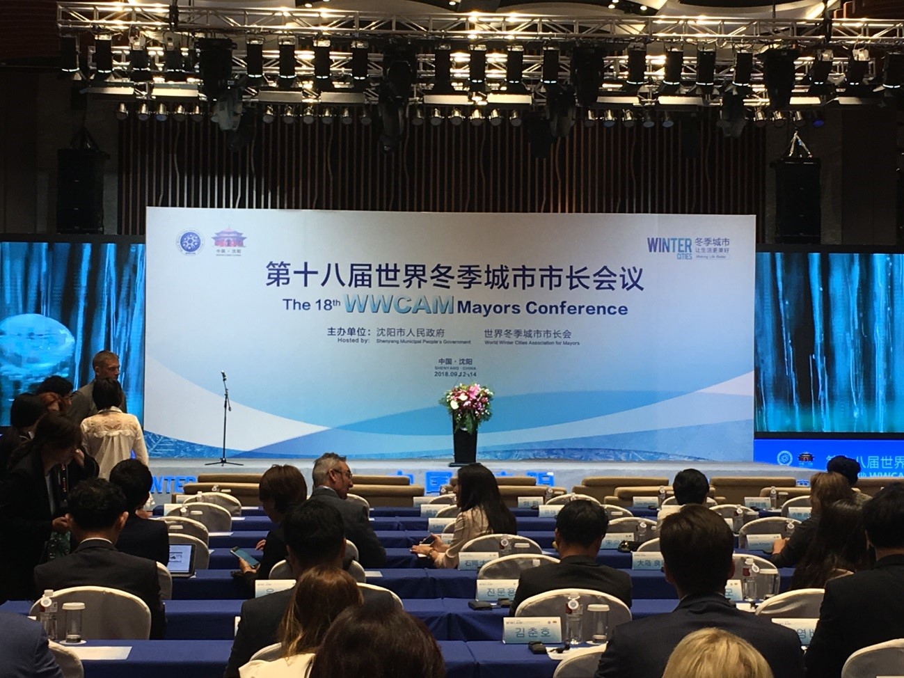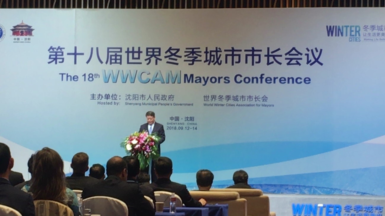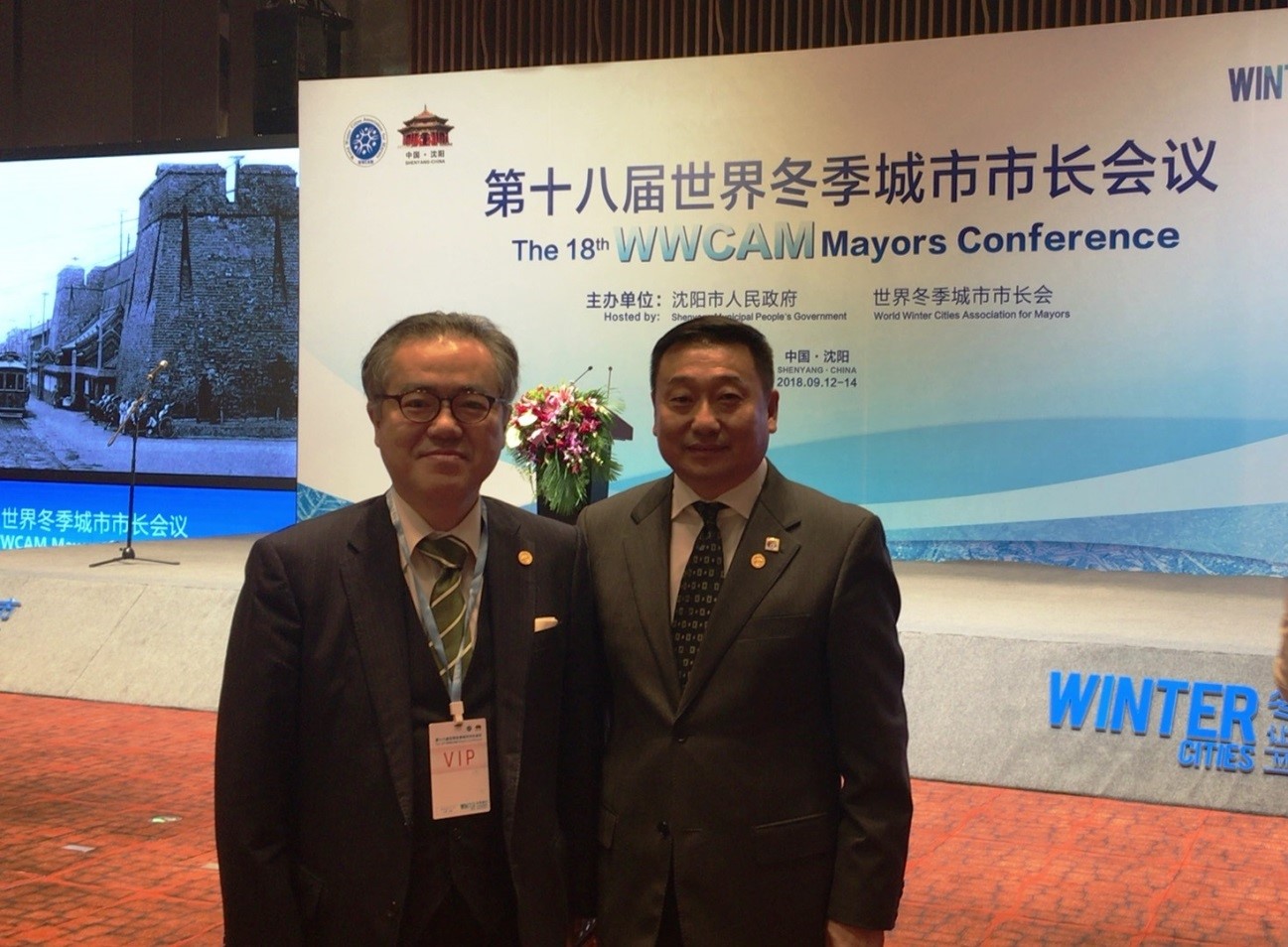 9月12日,石塚总领事与来自日本的北海道札幌市、长野县松本市以及北海道函馆市的代表,出席了由沈阳市人民政府及世界冬季城市市长会议共同主办的、在沈阳市新世界博览馆举行的第十八届世界冬季城市市长会议。
