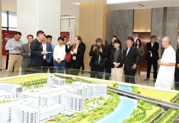 遼寧方大総医院は遼寧方大集団が100億元弱の資本を投じて建設した、敷地約215,533m2、建物は62万m2、ベッド数5,000床の総合病院です。浜田総領事は、担当者から同病院の全体像の説明を受けるとともに、外国人患者の受診を想定した国際医療センターを視察しました。
