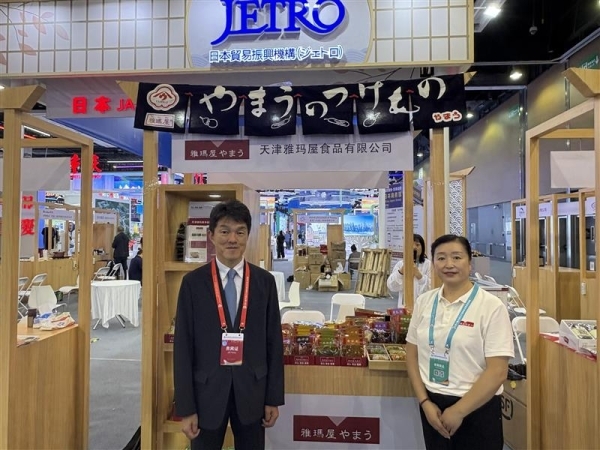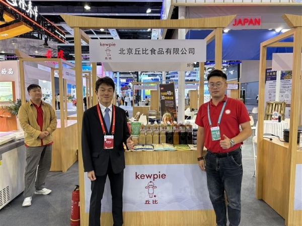 本次洽谈会主要由"辽宁创新馆"、"省际合作馆"和"国际交流馆"等区域构成。其中在"国际交流馆",日本食品企业分别搭建展位,展销其各具特色的产品。濵田总领事除了参观辽宁省各地区的展示外,还走访了这些食品相关日企的展位。