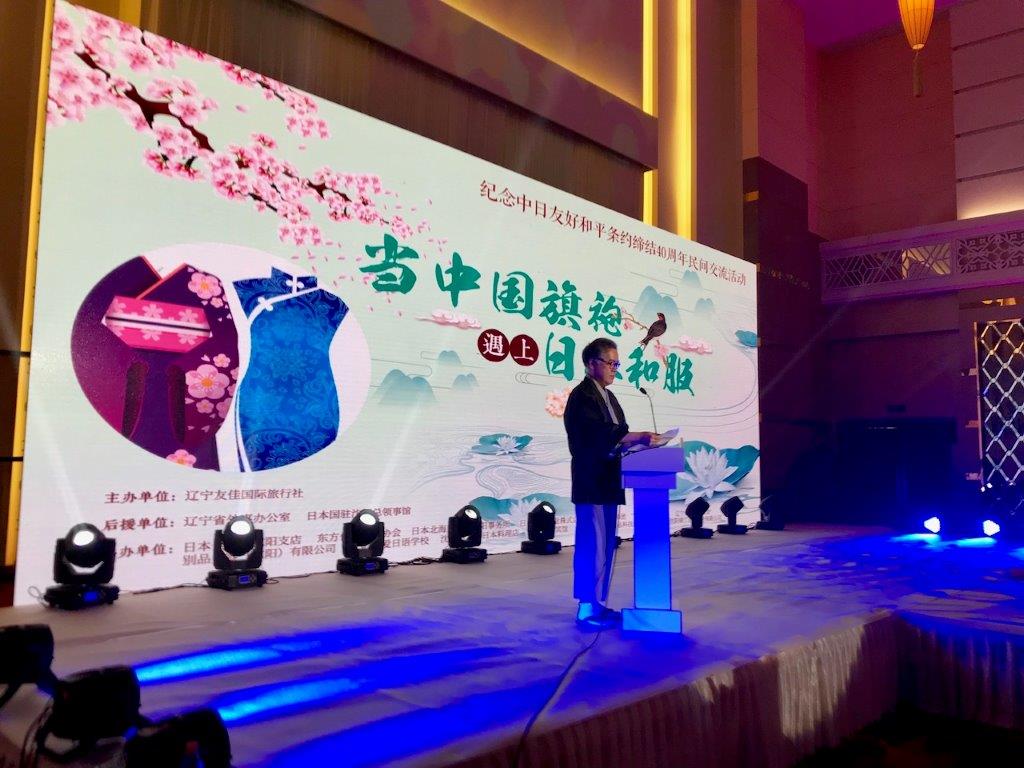 8月6日、石塚総領事は遼寧友誼賓館において、日中民間文化交流活動である「高文秀撮影作品展」を視察し、その後、チャイナドレス及び和服を紹介する「日中民族ファッションショー」に出席しました。同ファッションショーでは来賓としてスピーチを行いました。